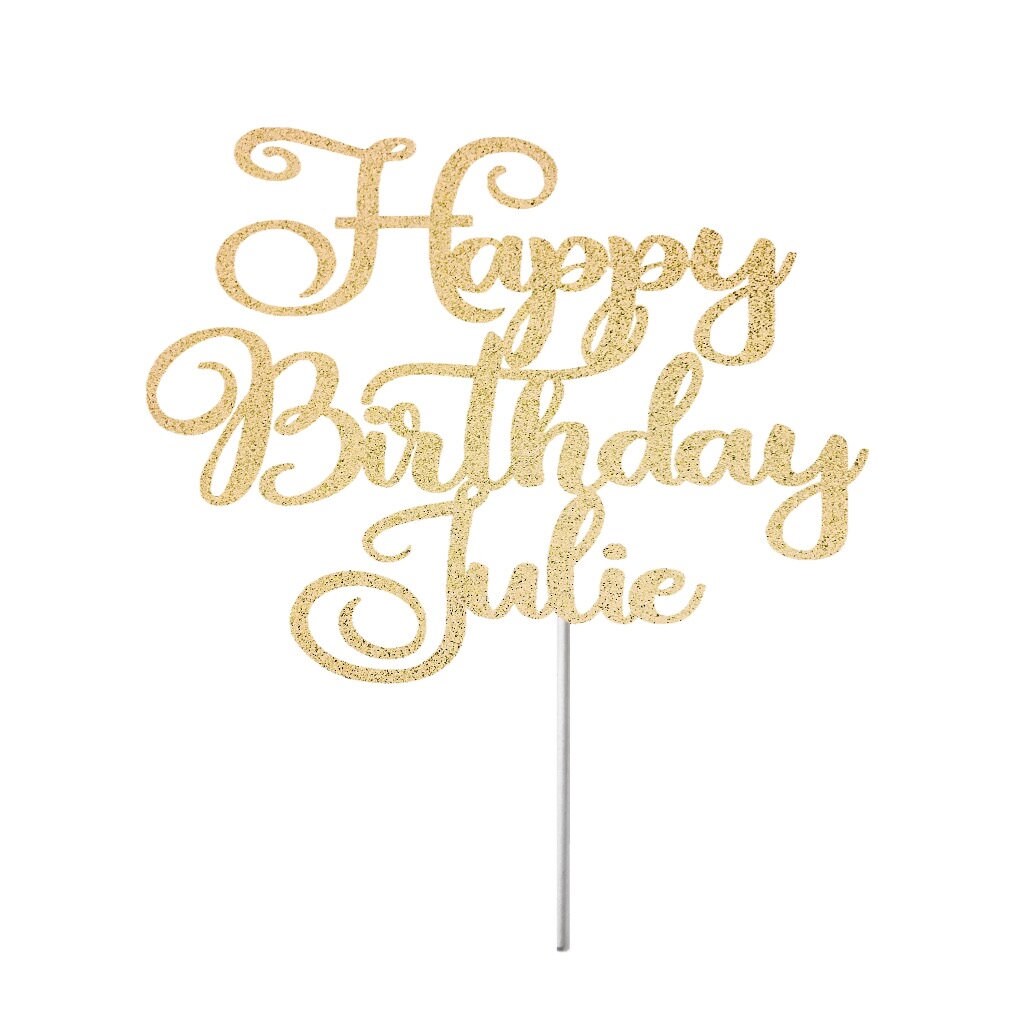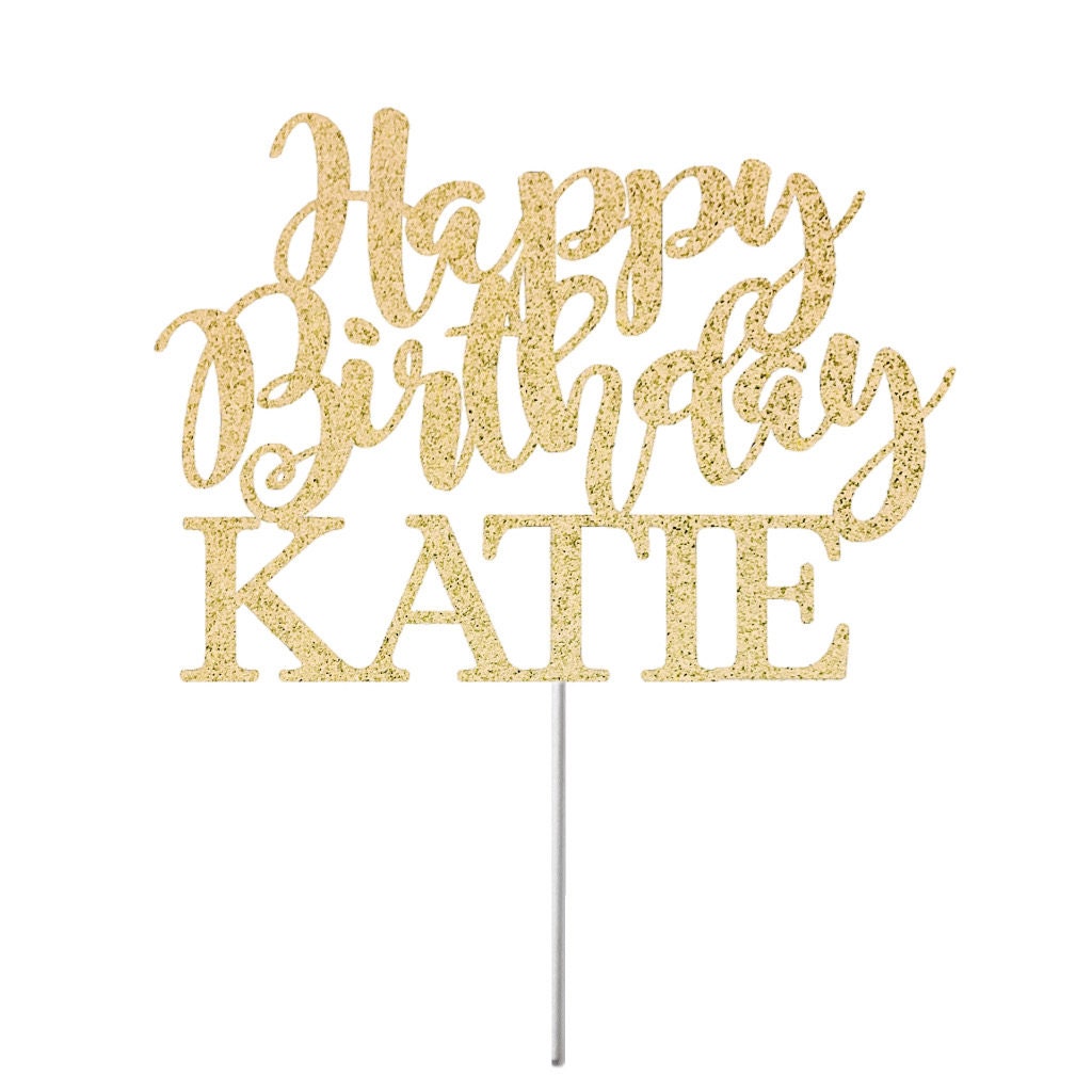 • Nome personalizzato Happy Birthday Cake Topper, Birthday Glitter Ca...