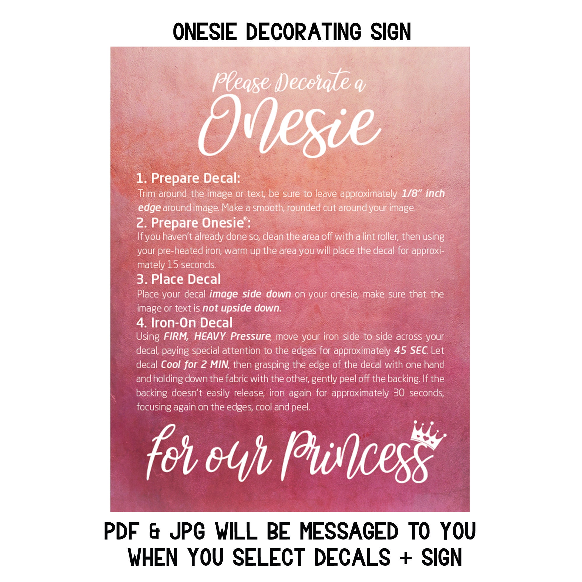 Tutto ciò di cui hai bisogno è un Ferro e una Onesie bianca ! Queste decalcomanie iron...