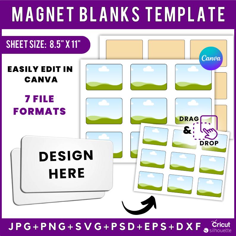 "Modello per magnete quadrato, modello per magnete SVG, modello per sublimazione di magnete, mo...