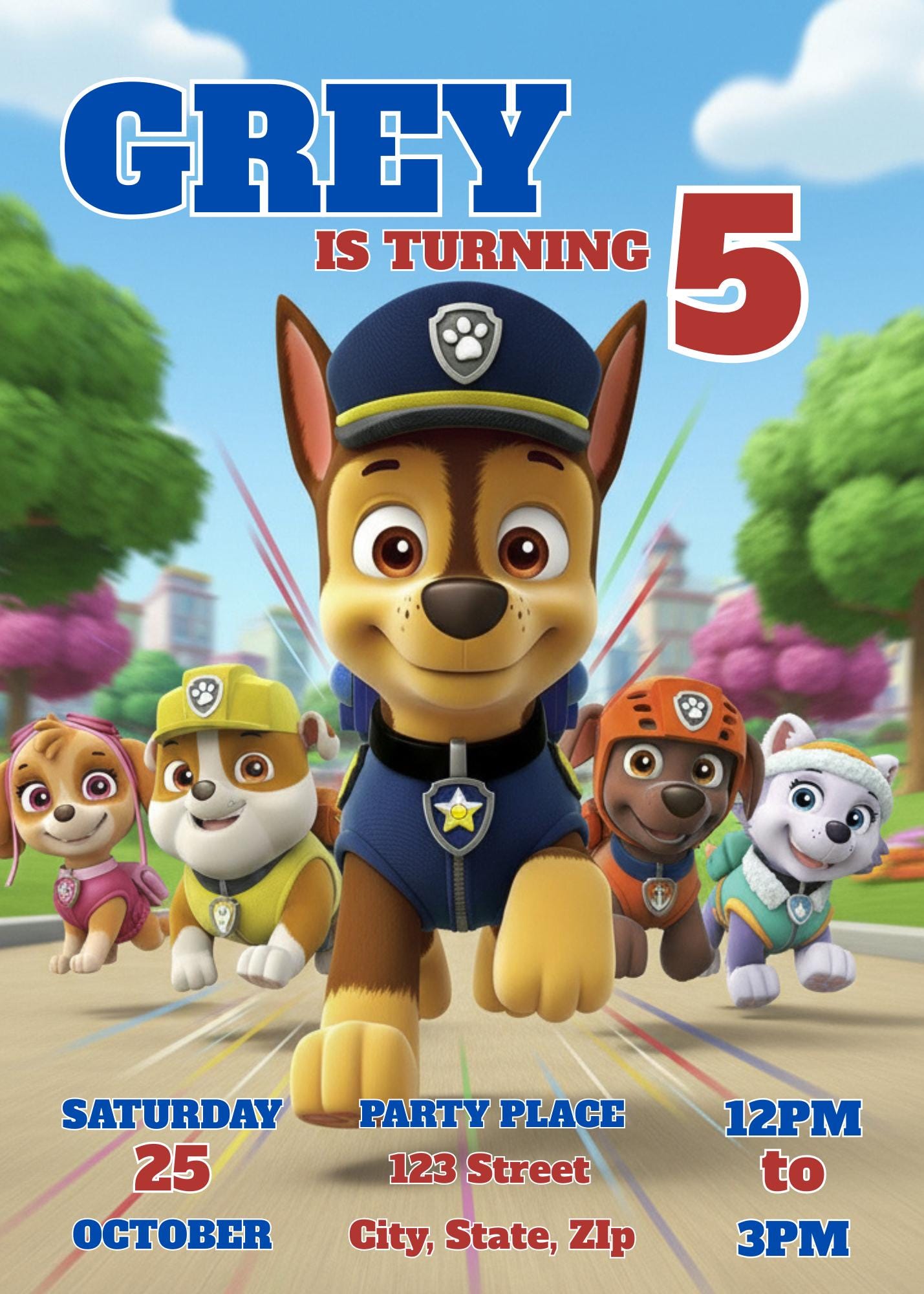 Invito di compleanno Paw Patrol / Modello Canva modificabile / Invi...