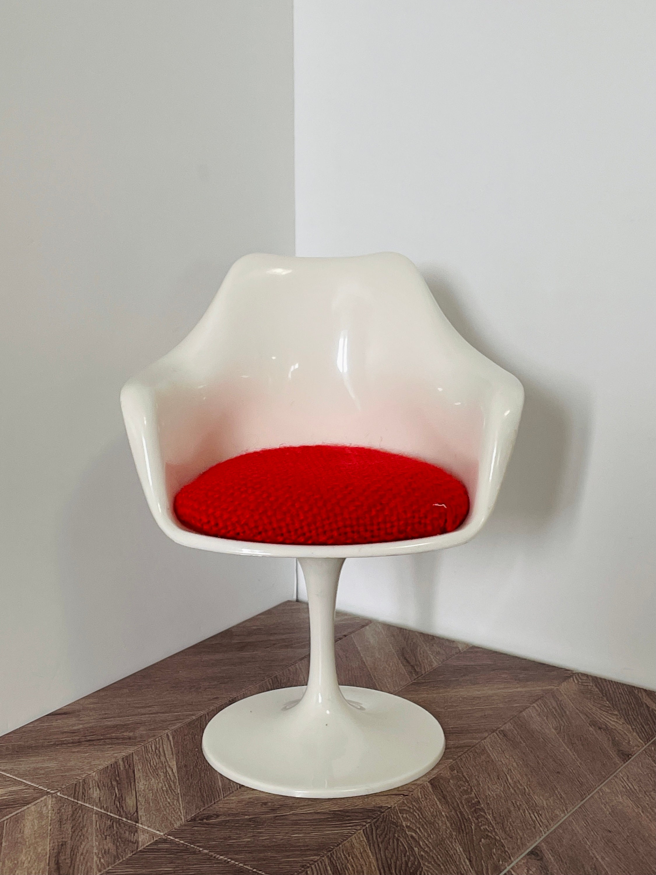 Poltrona Tulip in miniatura in scala 1:6 con braccioli - Bianca e rossa, poltrona decorativa in stil...