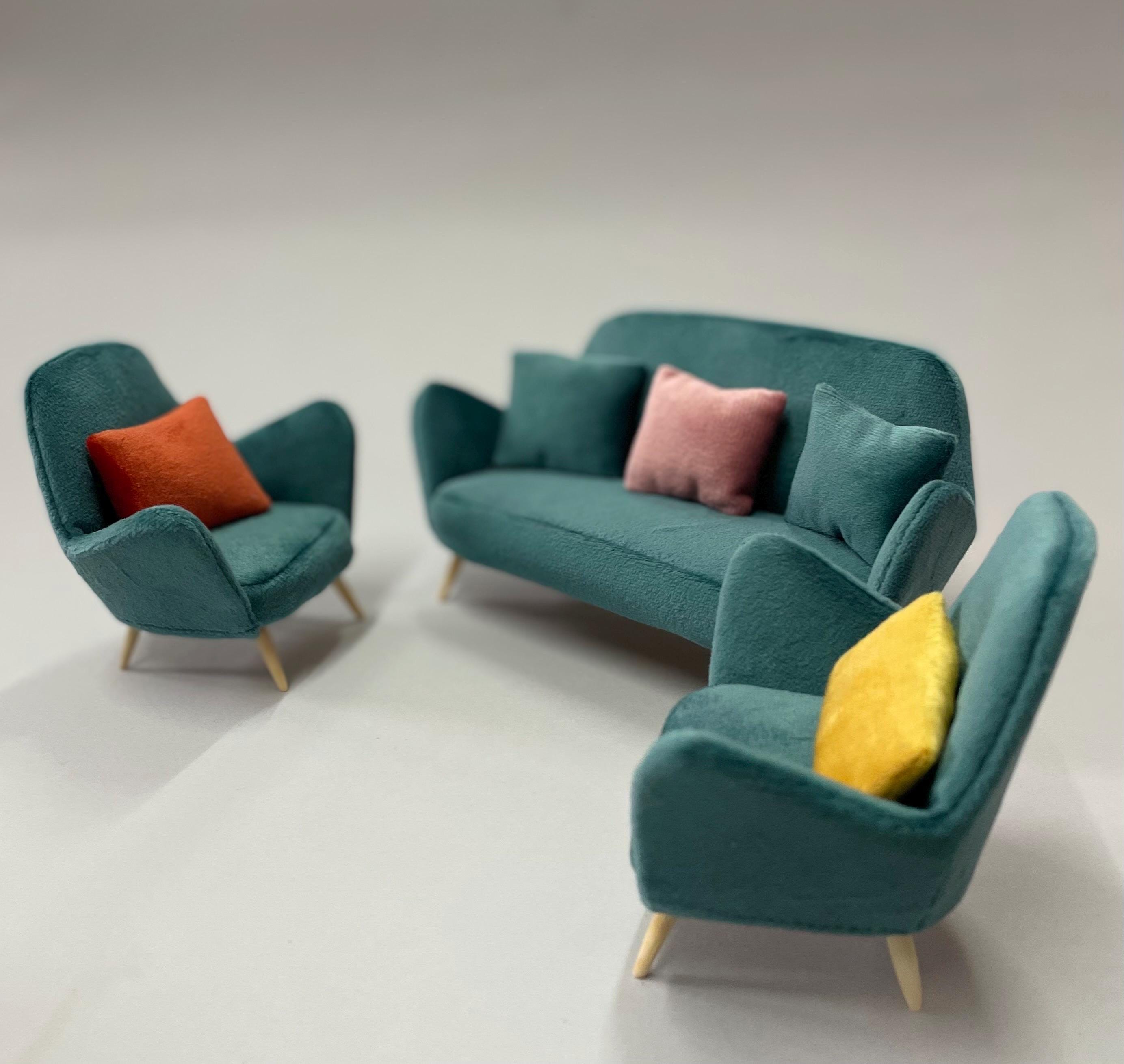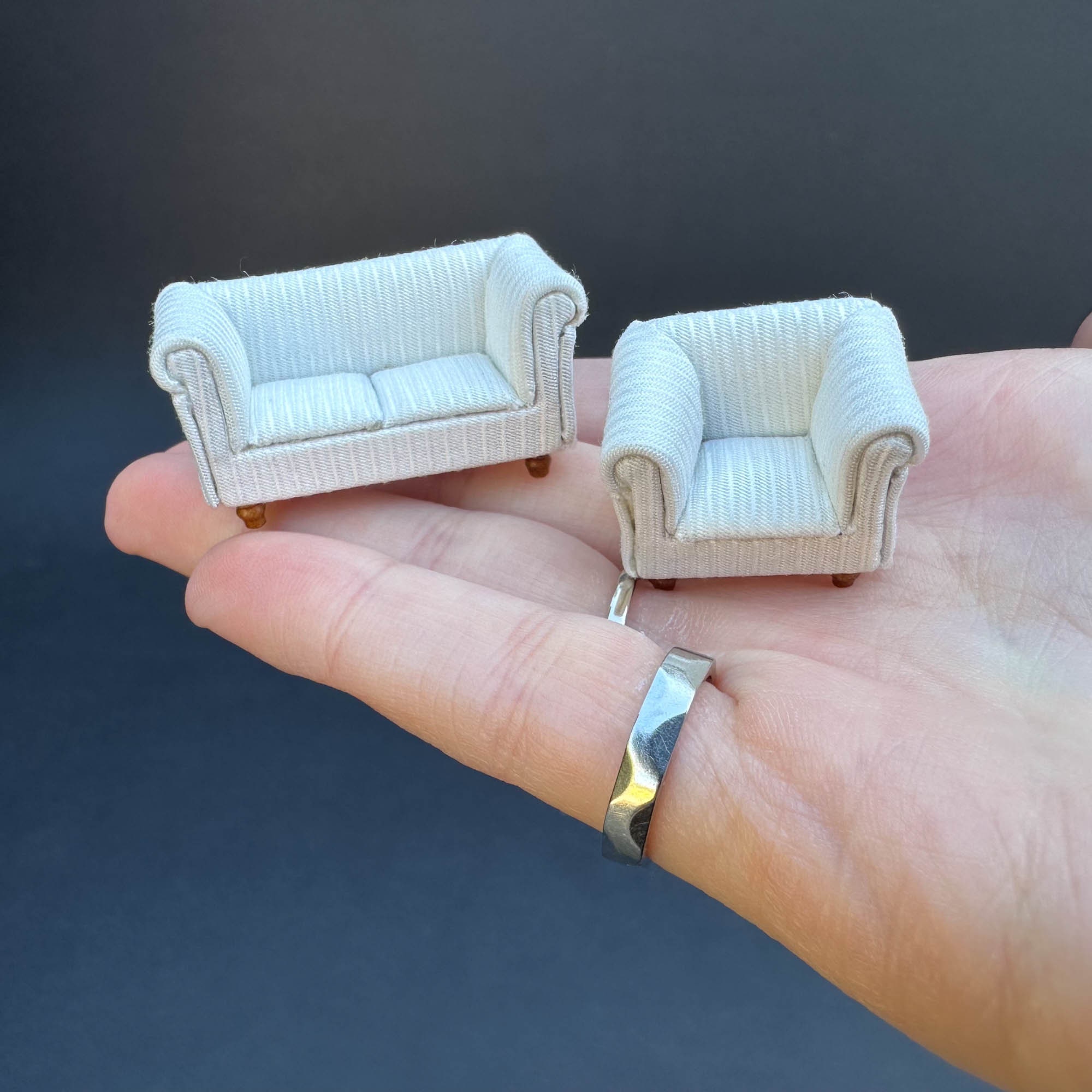 Divano e poltrona per casa delle bambole, mobili in miniatura per c...