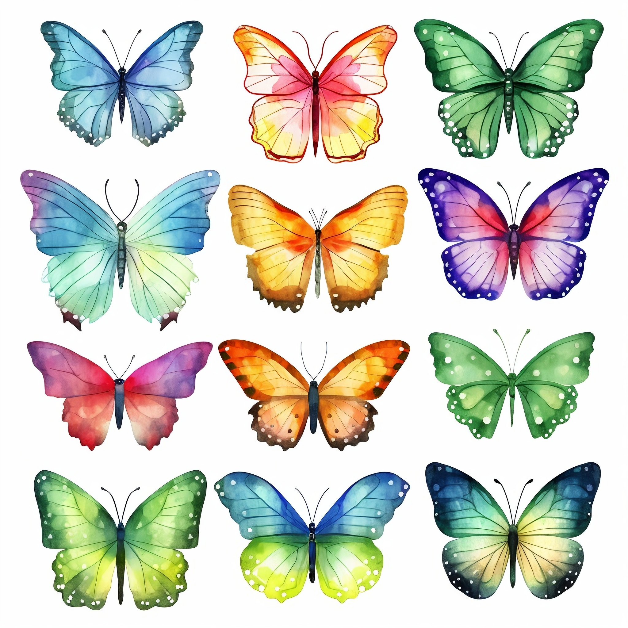 Clipart farfalla acquerello, PNG farfalla colorata, farfalla dipint...