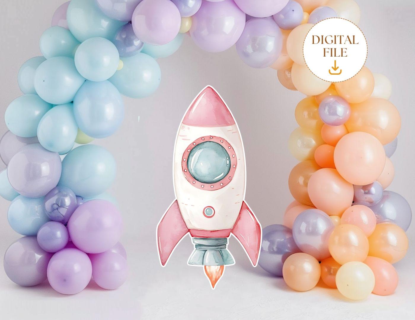 "Porta la tua festa a tema spaziale a un livello superiore con questo ritaglio di Pink Rocket! ...