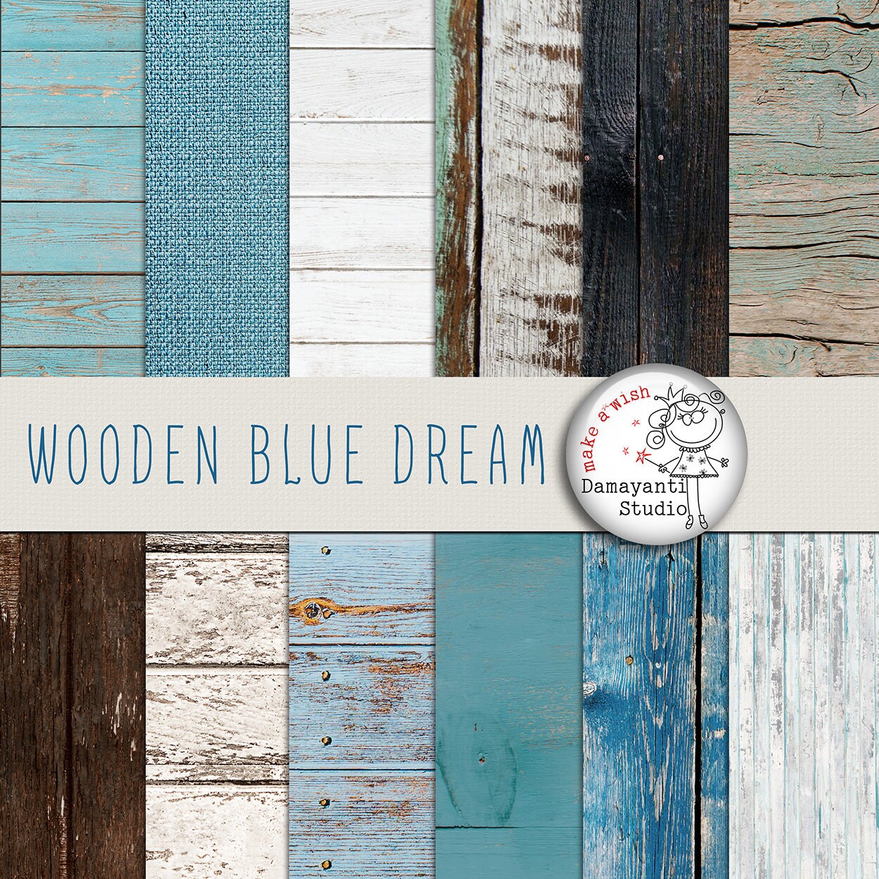 Pacchetto di sogni blu in legno Il set di carta viene fornito con 12 carte digitali individuali da 1...
