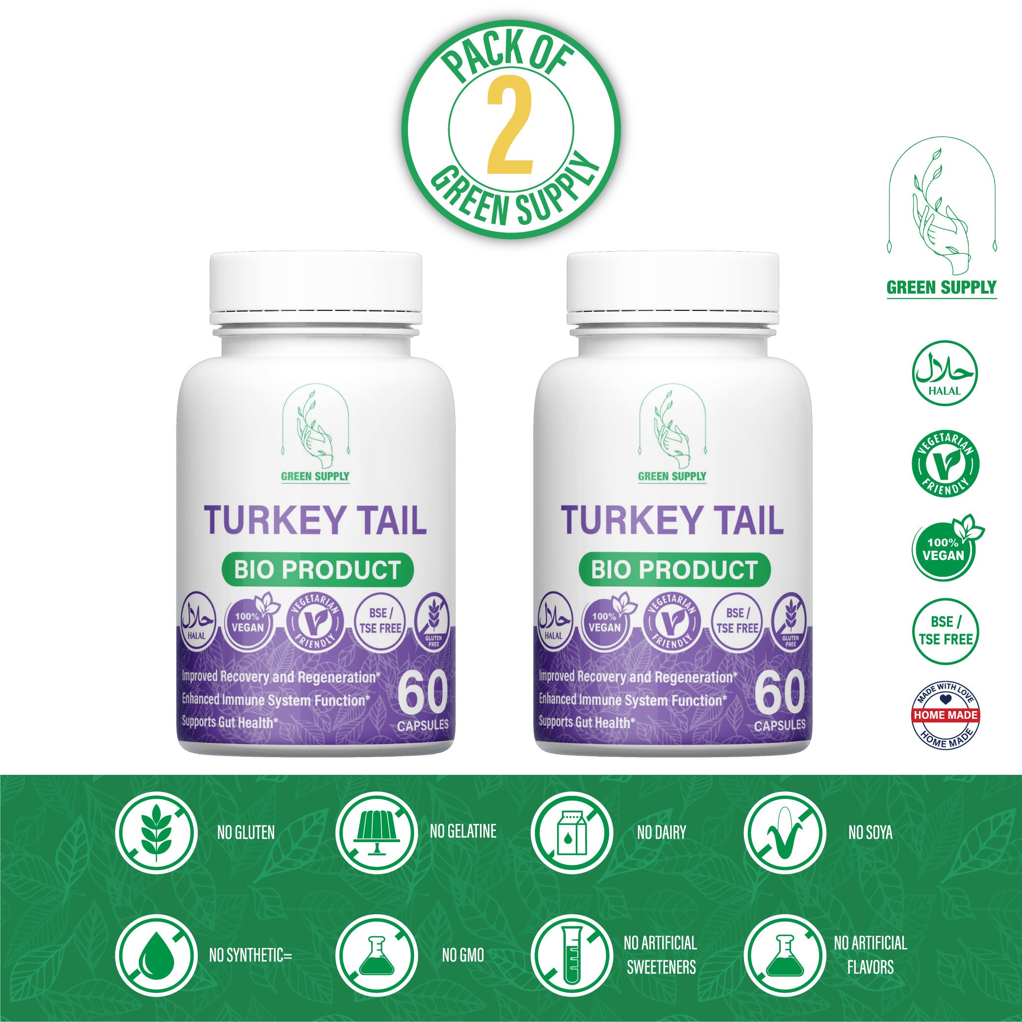 CONFEZIONE INIZIALE: 2 x Funghi coda di tacchino: Fungo coda di tacchino: 500 mg Qualità supe...