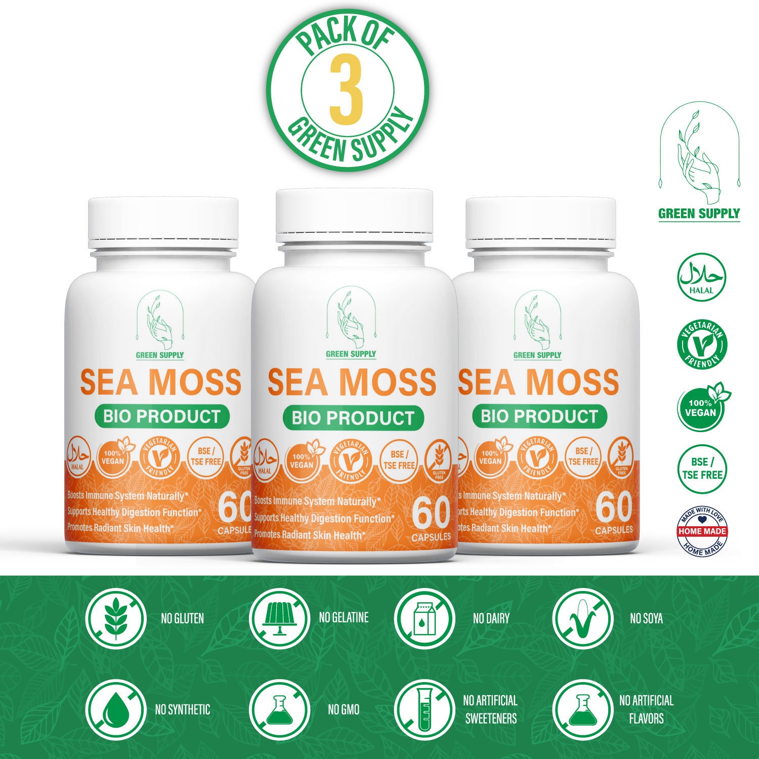 CONFEZIONE PRO: 3 capsule di muschio marino da 500 mg. Qualità superiore Affidati alla nostra...