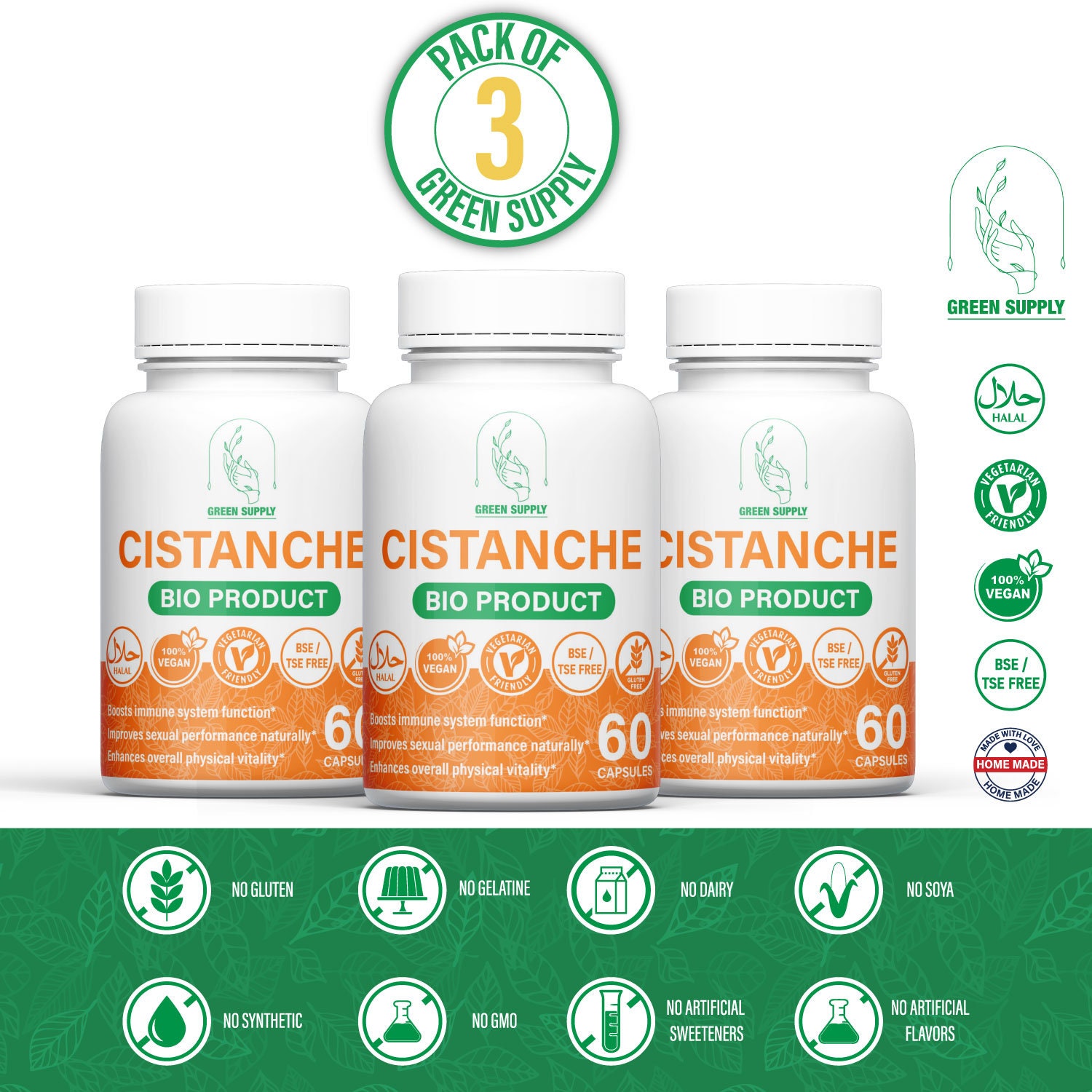 CONFEZIONE PRO: 3 capsule di Cistanche da 500 mg. Qualità superiore Affidati alla nostra lung...
