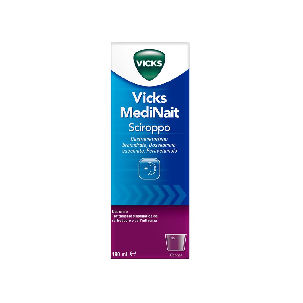 Codice Aic: 024449062Vicks MediNait 0,5 mg/ml + 0,25 mg/ml + 20 mg/ml sciroppo Destrometorfano bromi...
