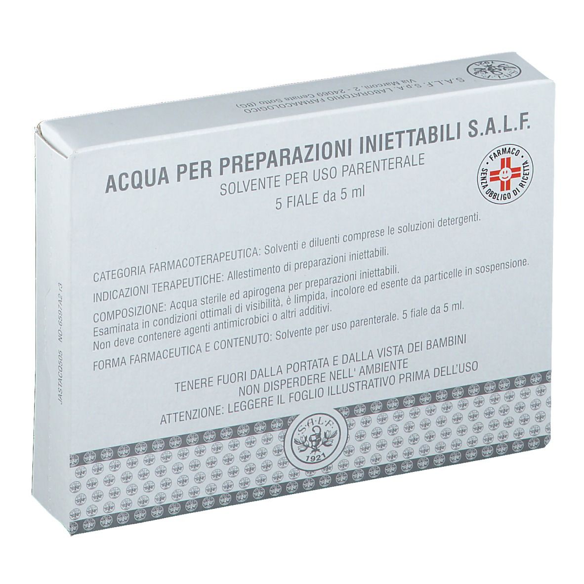 Acqua per Preparazioni Iniettabili S.A.L.F. 5 Fiale da ml 5x5 Soluz...