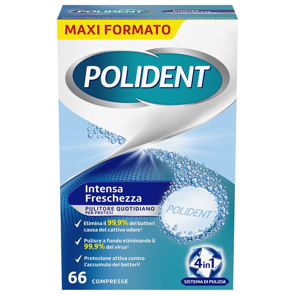 Polident Intensa Freschezza Pulitore Protesi Dentale 4 in 1, 66 cpr...