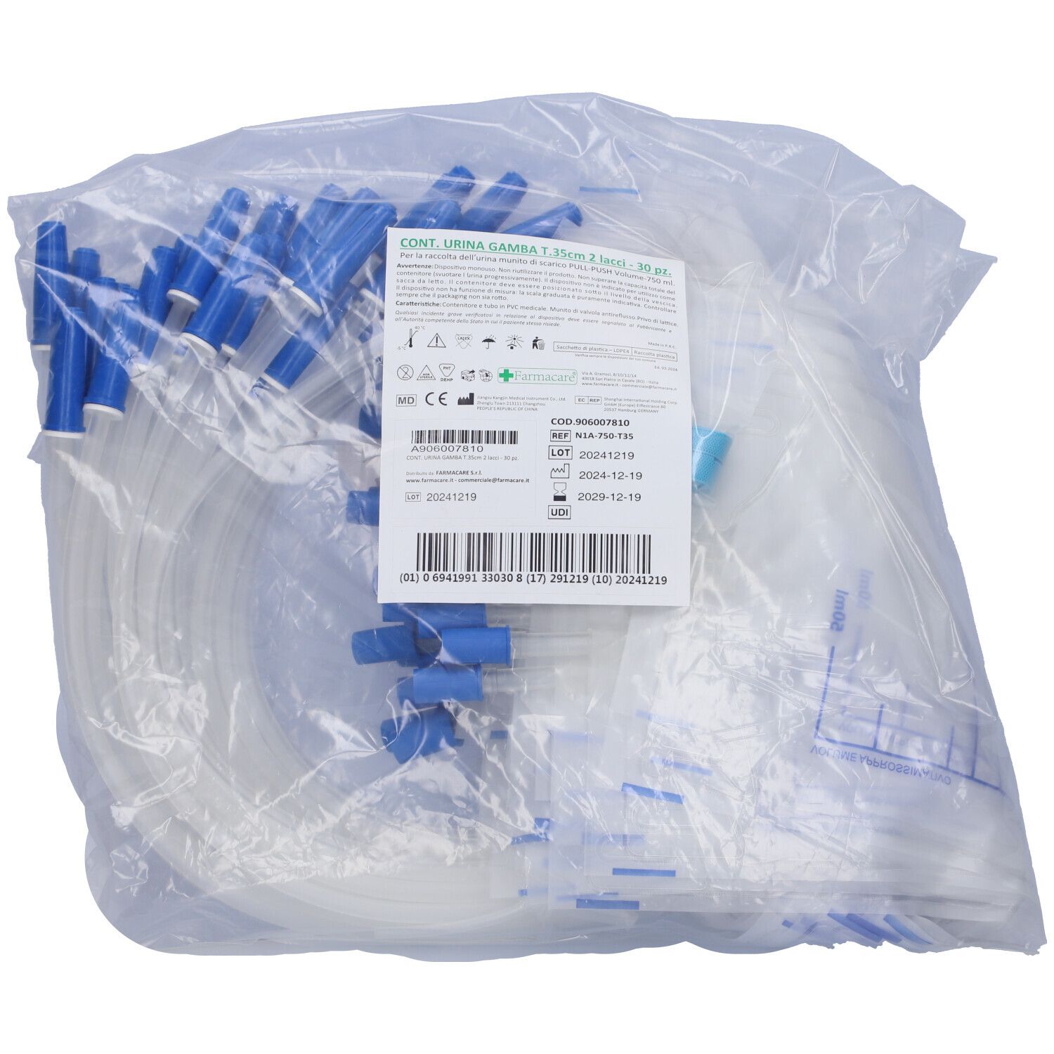 Farmacare Sacca per Urina da Gamba con Scarico Capacitá 750ml Tubo 35cm Prodotto in PVC medic...