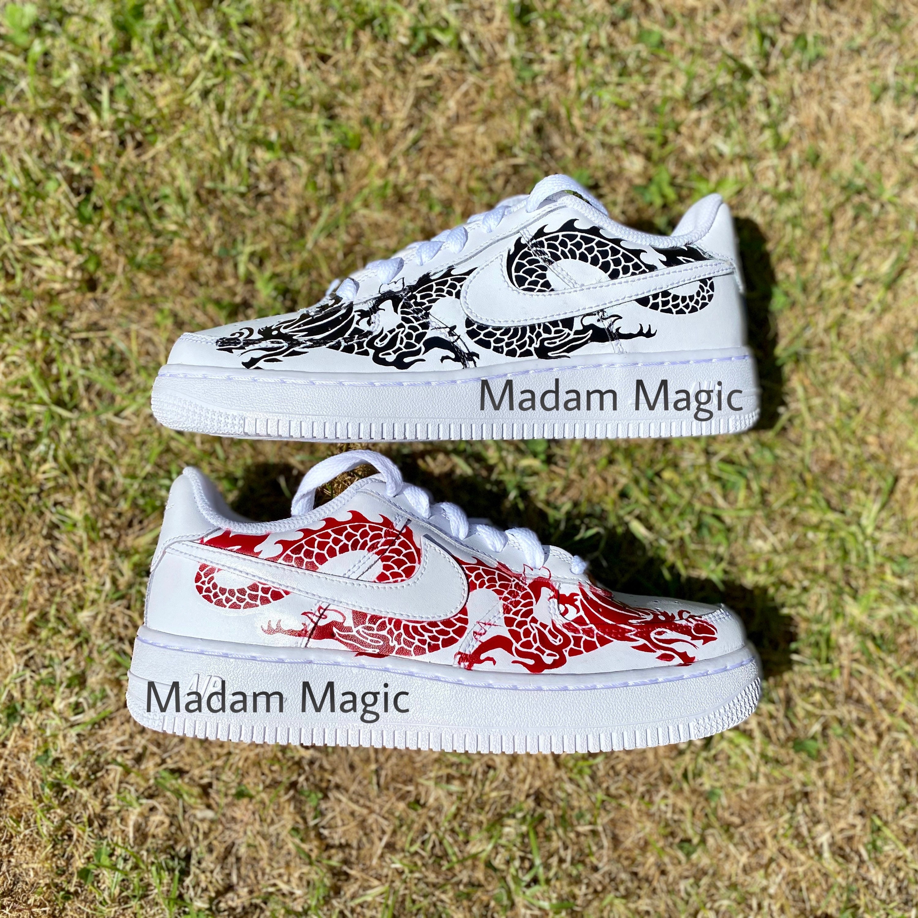 Dipinto a mano Custom Air Force 1 Low Black Red Dragon AF1 Personal...