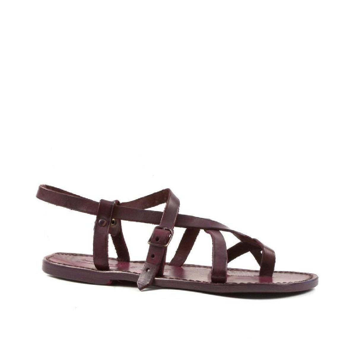 Sandali artigianali cuoio donna fatti in Italia in pelle color prug...