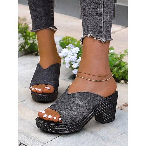 Categoria:Sandali; Materiali:Denim; Tipo di tacco:Tacco grosso; Genere:Per donna; Forma del piede:Pu...