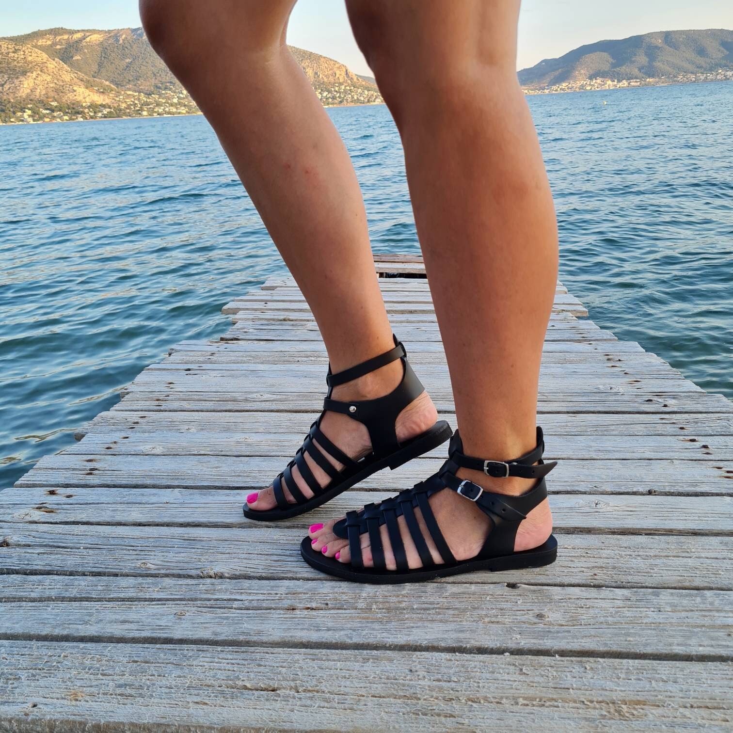Sandali greci in pelle, sandali in pelle da donna, sandali da gladi...