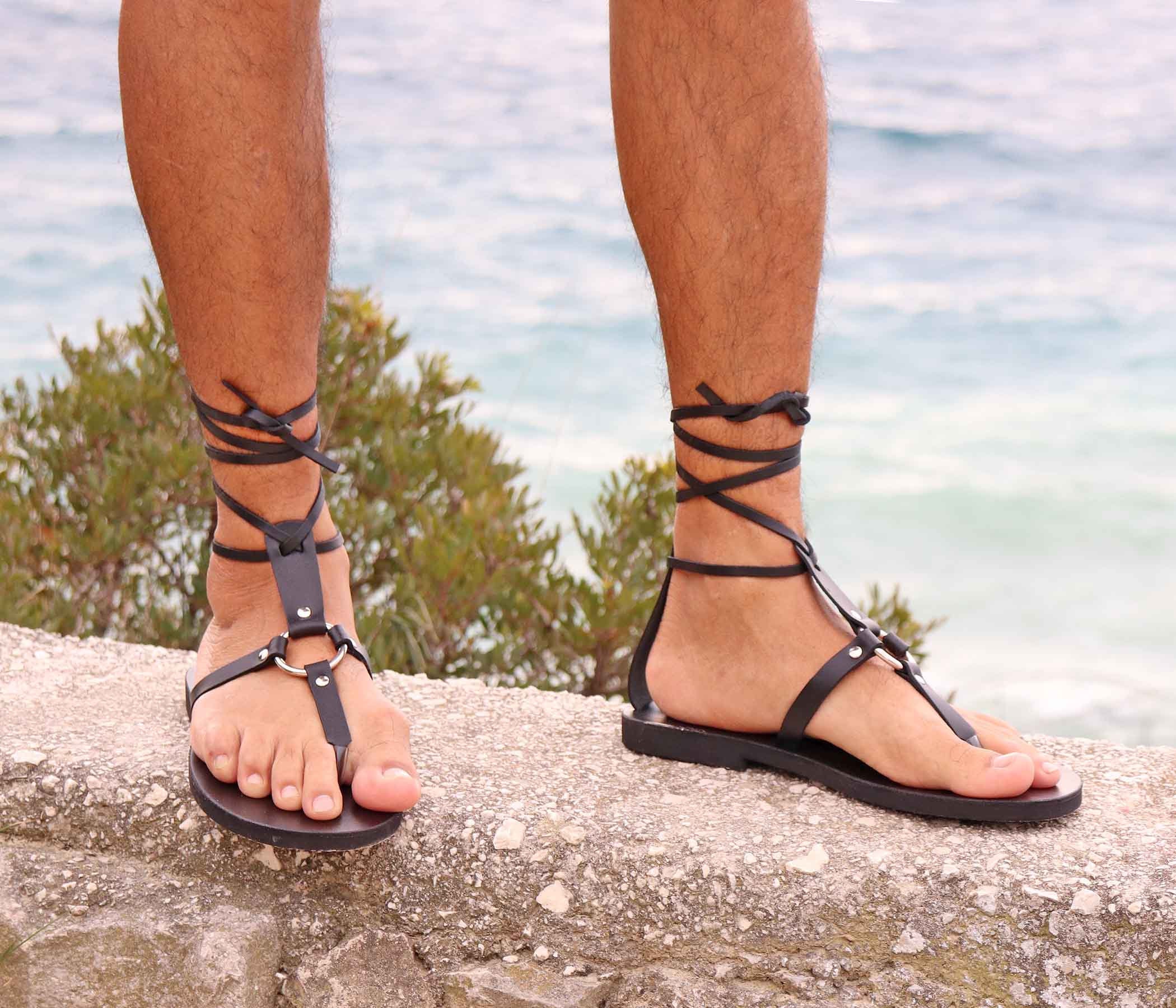 Sandali minimalisti da uomo a piedi nudi, sandali con rivetti con O...