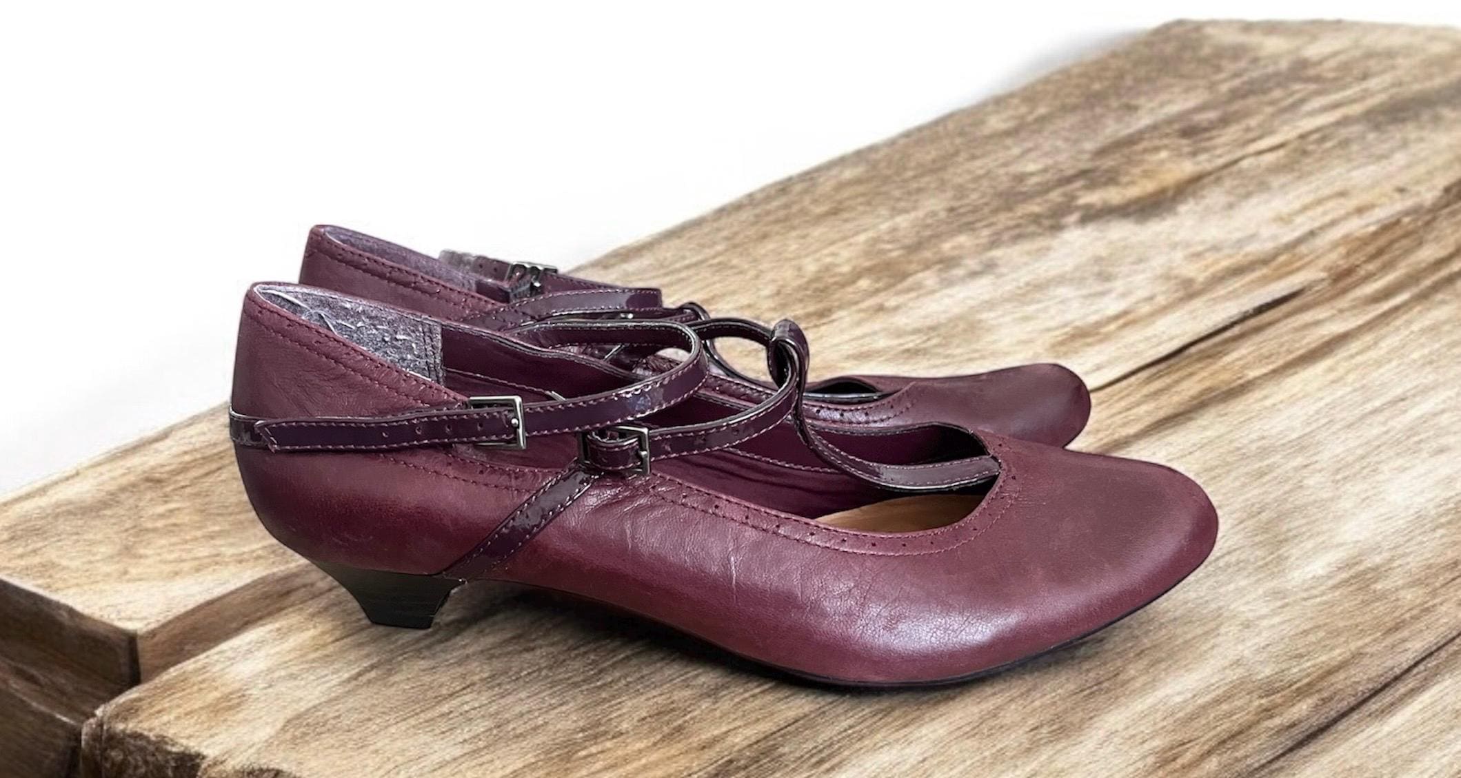 Scarpe Mary Jane Clarks in pelle bordeaux, mocassini con tacco (EU ...