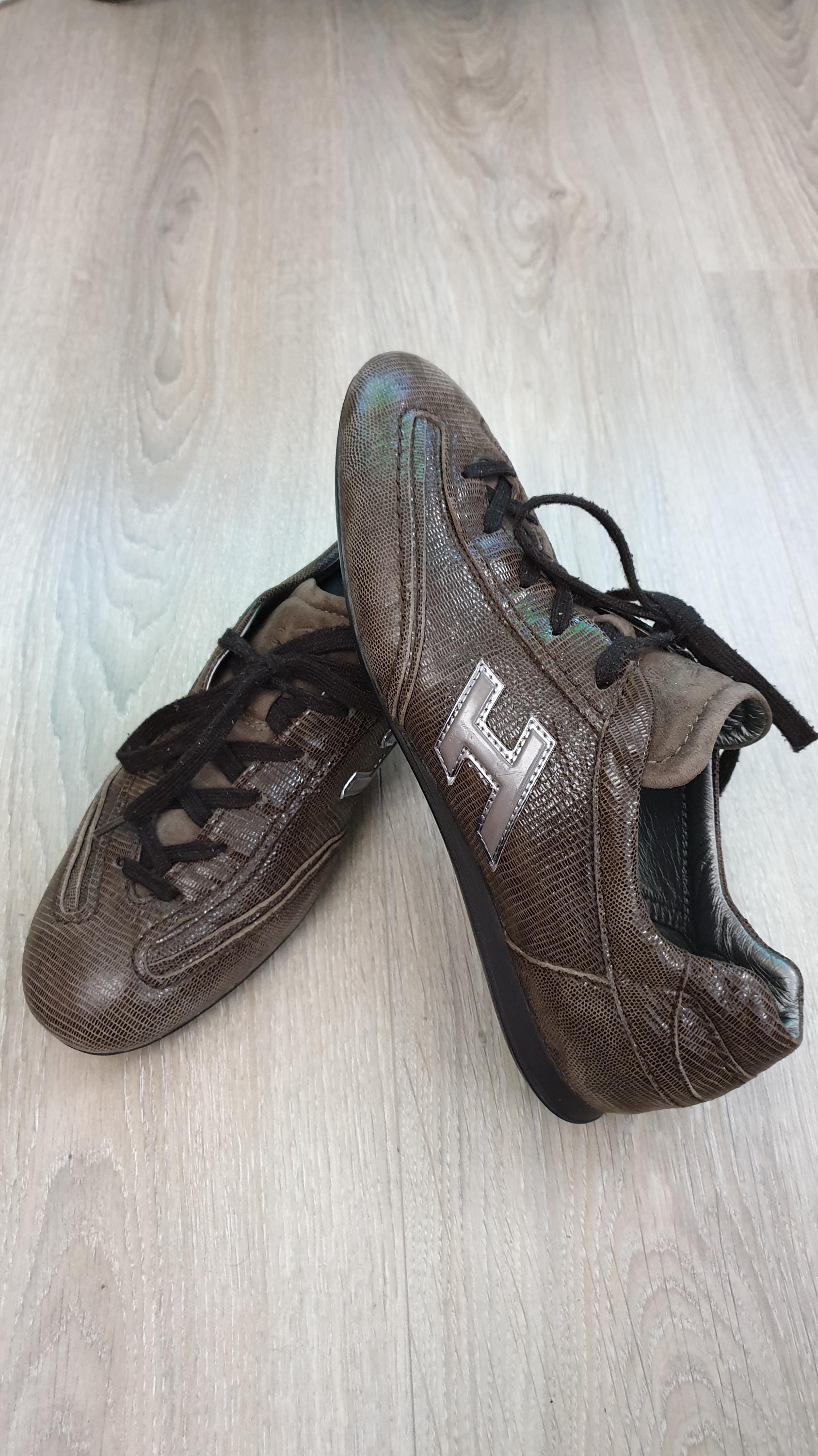 Autentiche Hogan da donna in pelle marrone basse scarpe da ginnastica da passeggio vintage taglia 36...