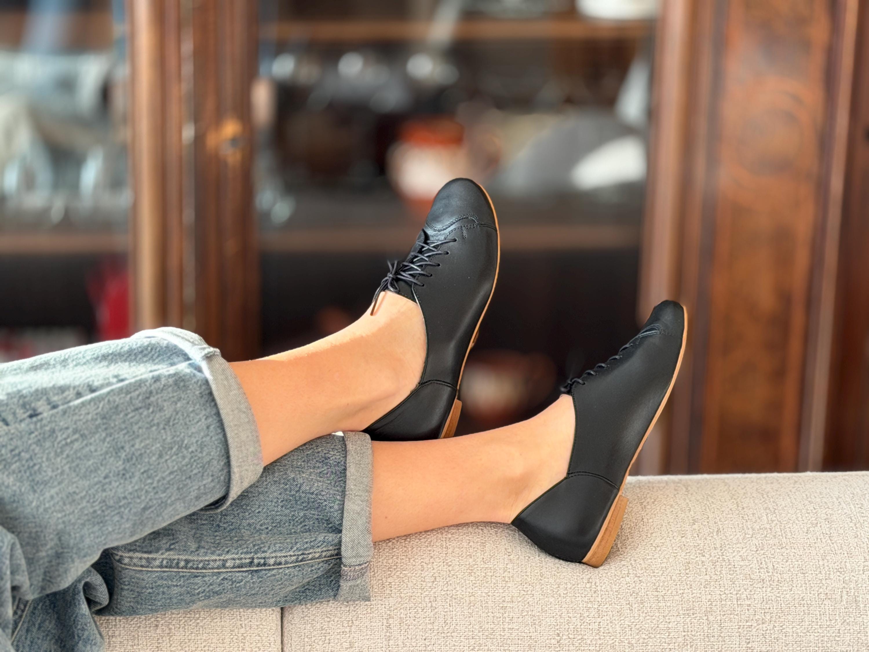 Scarpe da donna in pelle fatte a mano, scarpe nere Oxford, scarpe b...