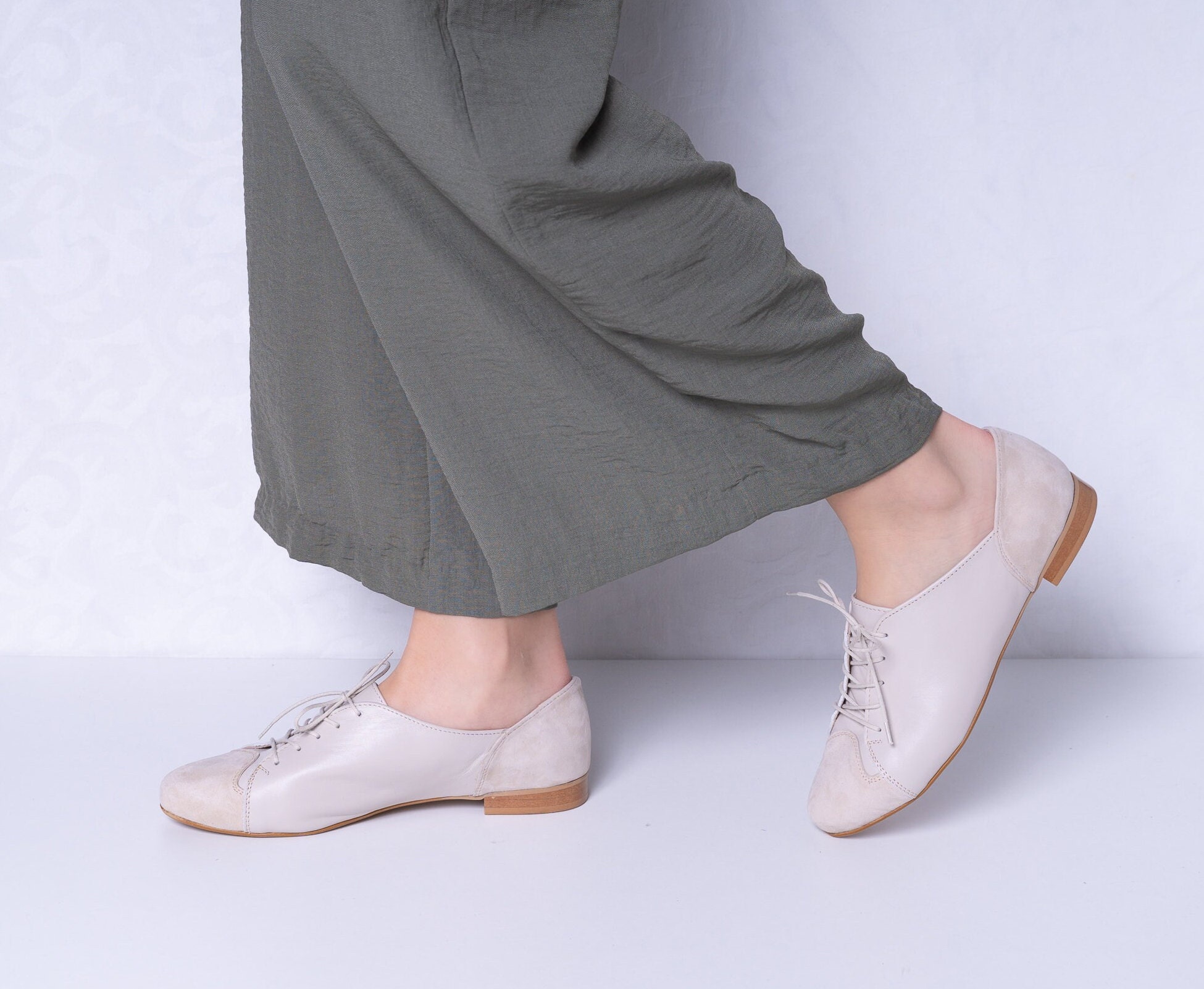 Scarpe da donna fatte a mano in vera pelle con lacci, scarpe basse,...