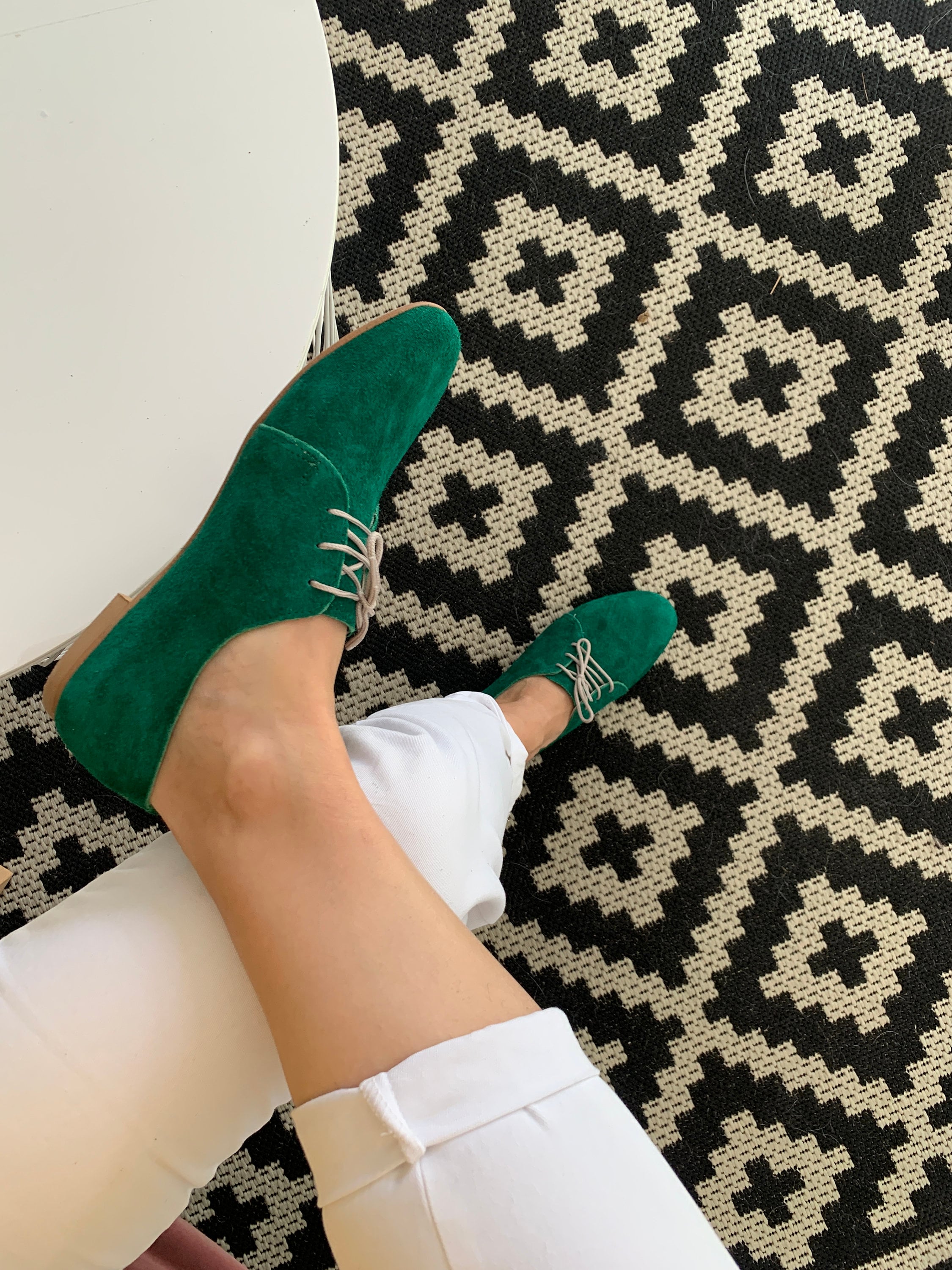 Scarpe da donna Oxford verdi/Scarpe in pelle scamosciata verde/Scar...