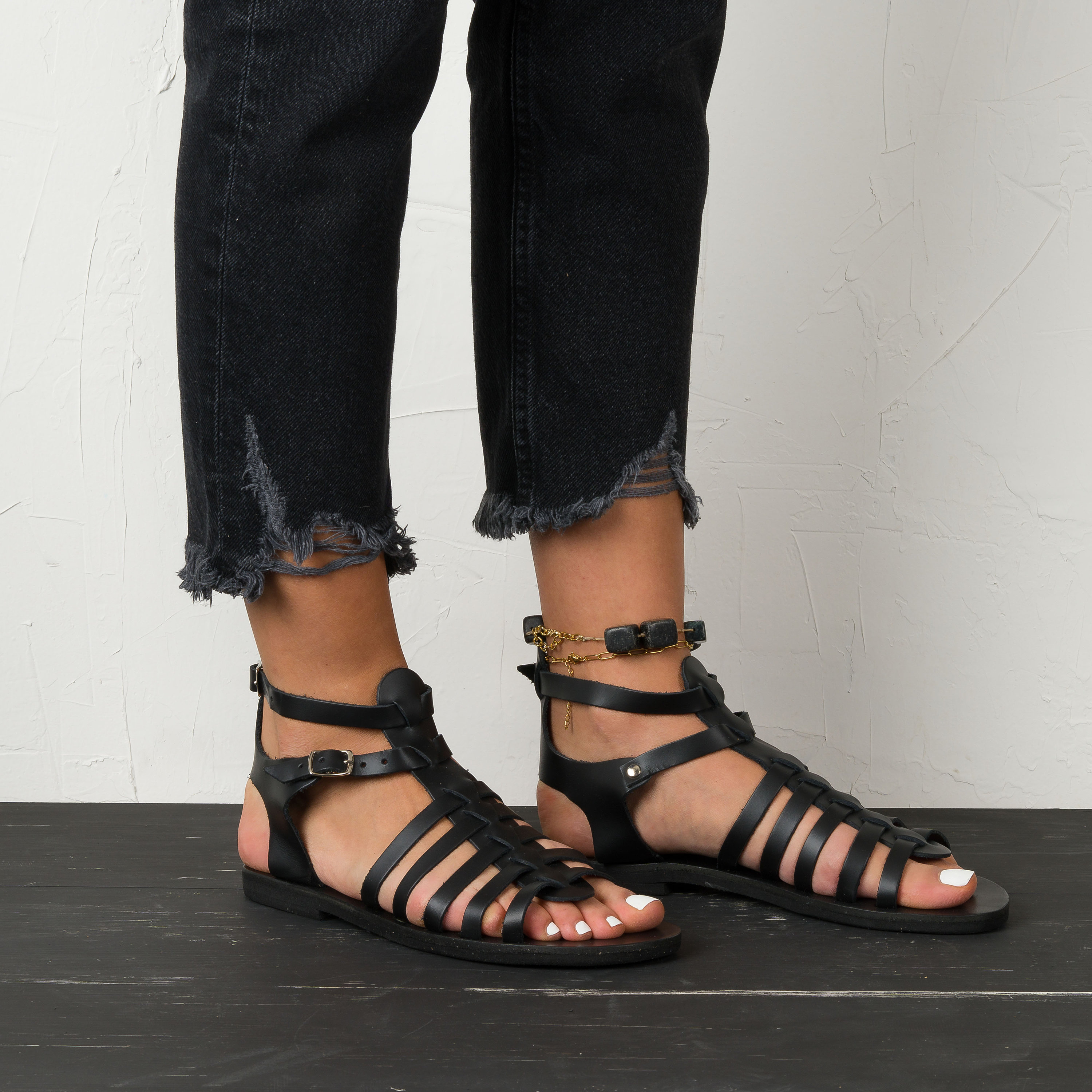 Sandali in pelle, sandali neri, sandali con lacci, sandali in vera ...