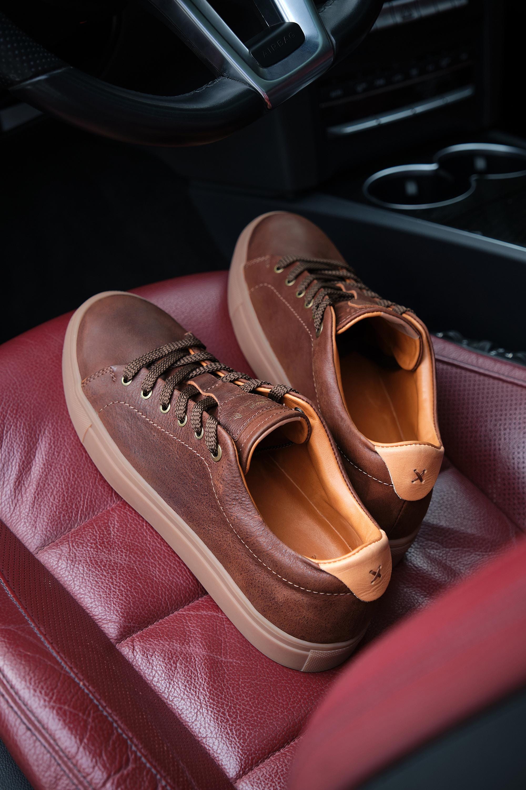 Sneakers in pelle marrone con suola in vera gomma bianca Margom, sc...