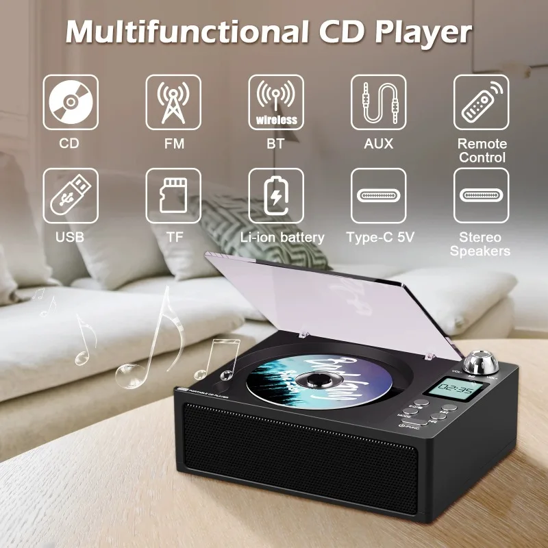 Lettore CD Portatile Mini Hi-Fi Puro con Altoparlante Stereo Person...
