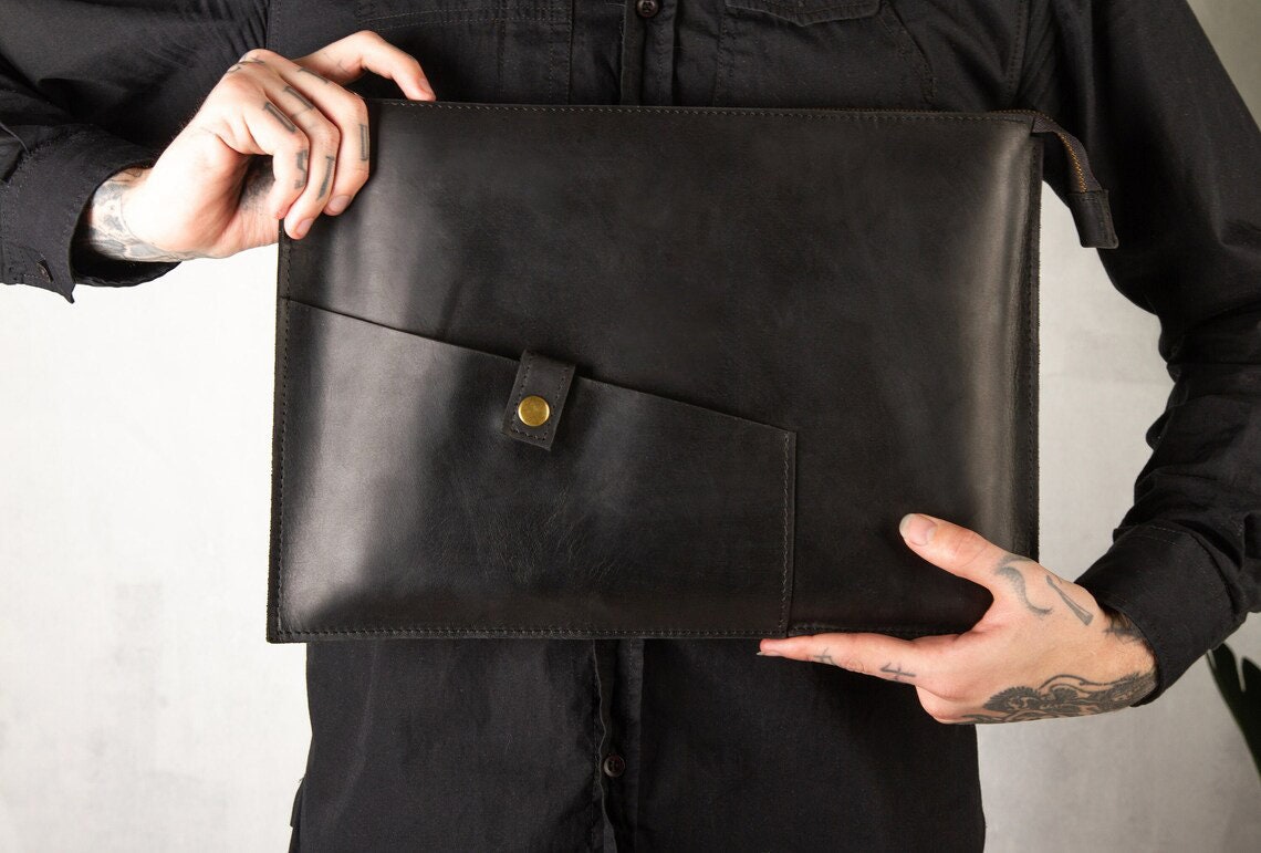 Migliora il tuo trasporto quotidiano con la nostra custodia per laptop in pelle realizzata a mano. P...