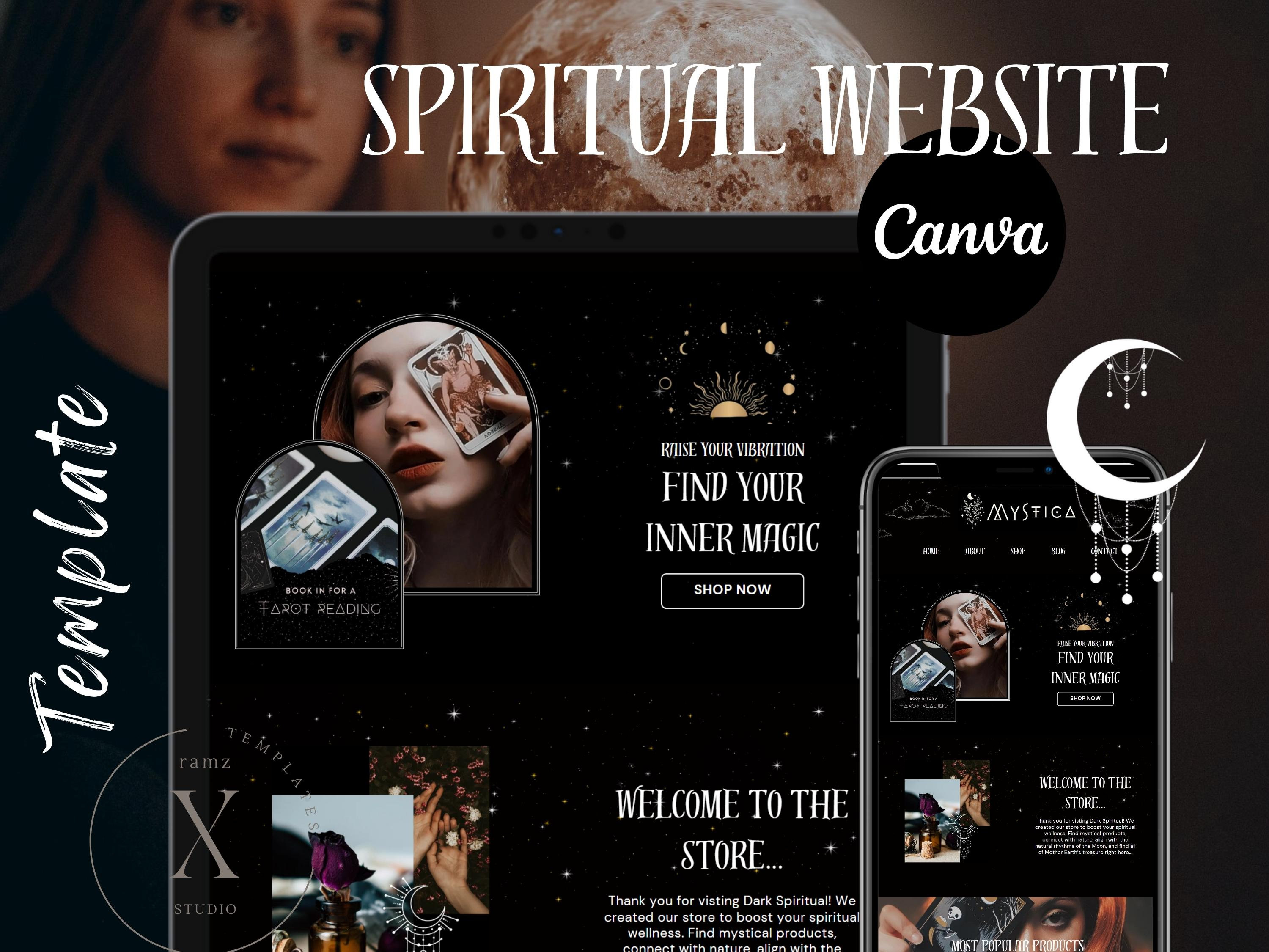Modello di sito web spirituale Canva, sito web mistico, sito web di streghe, sito web di astrologhi ...