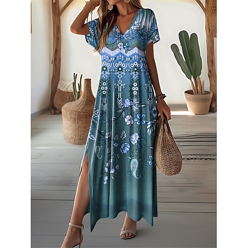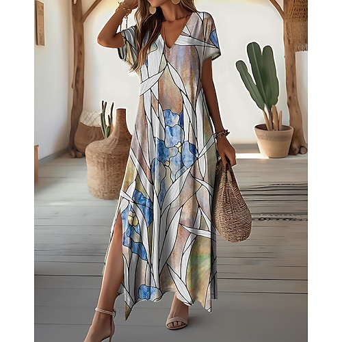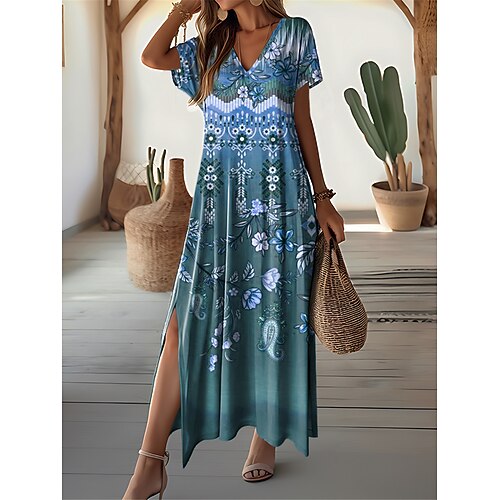 Categoria:Vestito maxi; Stagione:Estate; Tessuto:Poliestere; Lunghezza della manica:Manica Corta; De...