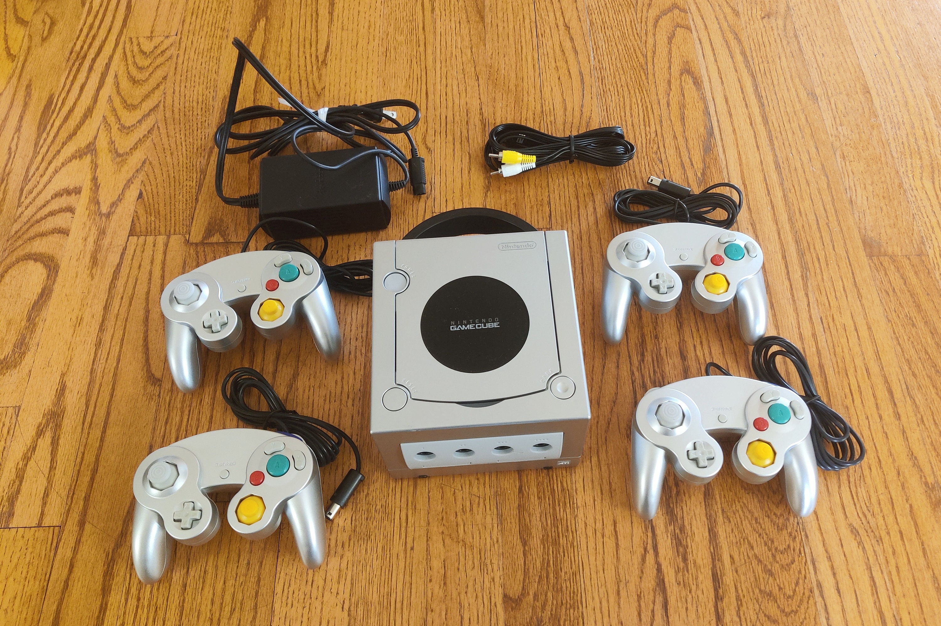 Console GameCube Argento + Controller/i + Cavo AV e Caricabatterie. I controller sono nuovi di zecca...